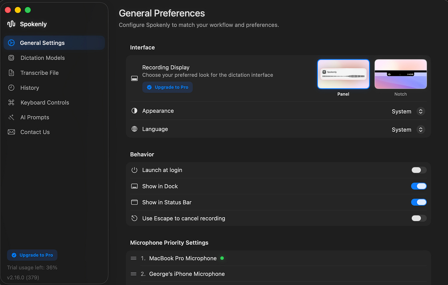 What I like about Spokenly’s model: it is customization. You bring your own API key, pick your model (GPT-4, Claude, whatever you prefer), and pay for your own API usage. The setup takes a few minutes, but you control the cost and the model. If you do not want to deal with API keys, there is a Pro plan at $7.99/month that handles everything for you.